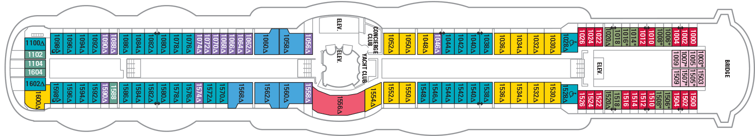 Cabine interne da 738 Cabine esterna da 948 Cabine con balcone da 1.458 Suite da 2.488