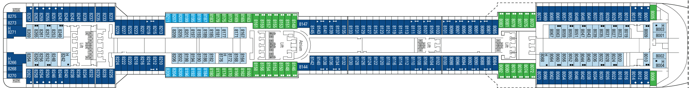 Cabine interne da 964 Cabine esterna da 1.134 Cabine con balcone da 1.364 Suite da 2.074