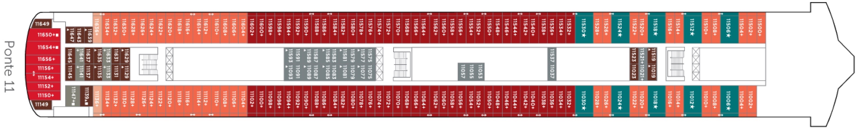 Cabine interne da 770 Cabine esterna da 835 Cabine con balcone da 1.795 Suite da 2.100